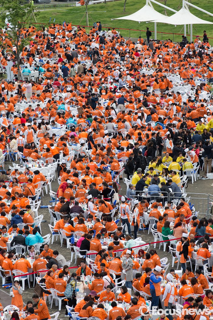 (서울=포커스뉴스) 10일 오후 서울 서초구 반포한강공원에서 중국 건강보조제품 회사 중마이과기발전유한공사 소속 임직원들이 삼계탕 만찬을 즐기고 있다.