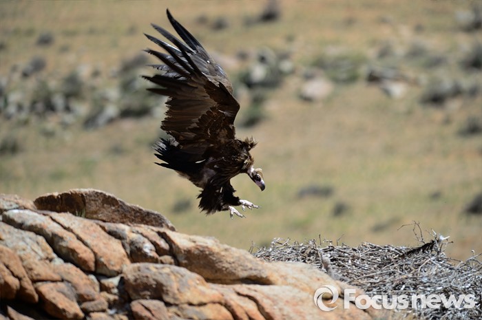 (바가 가즈링 촐로/몽골=포커스뉴스)먹이를 찾아 나섰던 독수리가 3시간 만에 새끼가 있는 둥지로 돌아오고 있다.