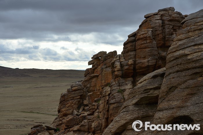 (바가 가즈링 촐로/몽골=포커스뉴스) 바가 가즈링 촐로의 화강암들이 오랜 세월 풍화작용을 일으켜 마치 벽돌을 겹겹이 쌓은 것 처럼 보인다.