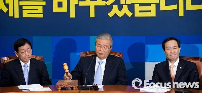 (서울=포커스뉴스) 김종인 더불어민주당 비상대책위 대표가 11일 오전 서울 여의도 국회에서 열린 비상대책위원회의에 참석해 의사봉을 두드리고 있다.