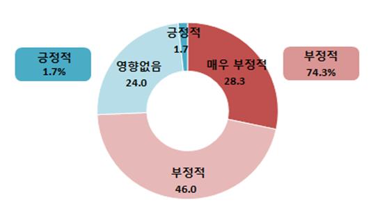 이에 따르면, 중소유통상인 74.3%는 대형쇼핑몰 입점이 미친 영향에 대해 "부정적"이라고 응답햇다. 대형쇼핑몰 입점 전과 비교해 매출이 감소했다는 응답비율은 76.7%에 달했다. 평균매출 감소액은 30.9%로 조사됐다.
