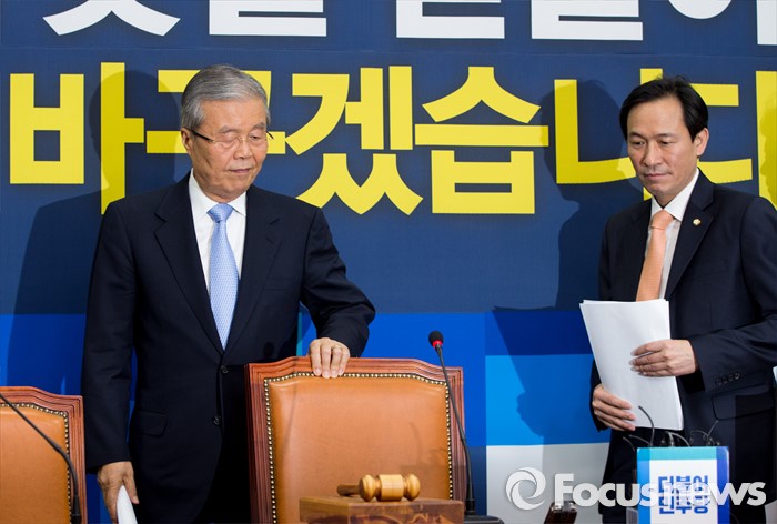 (서울=포커스뉴스) 김종인(왼쪽) 더불어민주당 비상대책위 대표와 우상호 원내대표가 11일 오전 서울 여의도 국회에서 열린 비상대책위원회의에 참석하기 위해 회의실로 들어서고 있다.