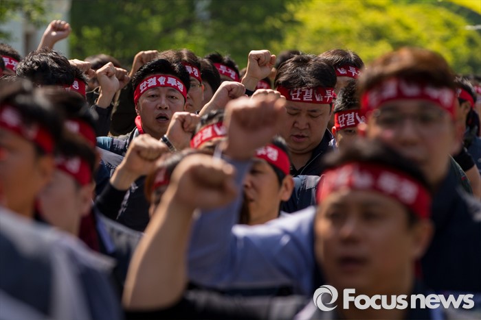 | △ 구회 외치는 노조원들 |