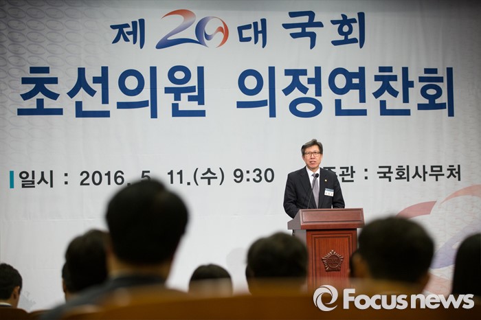 (서울=포커스뉴스) 박형준 국회사무총장 11일 오전 서울 여의도 국회 헌정기념관에서 열린 20대 국회 초선의원 의정연찬회에서 환영사를 하고 있다.