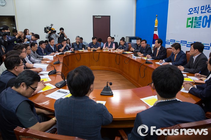 (서울=포커스뉴스) 김문호 전국금융산업노동조합 위원장이 11일 오전 서울 여의도 국회에서 열린 '더불어민주당-전국금융산업노조 간담회'에서 모두발언 하고 있다.