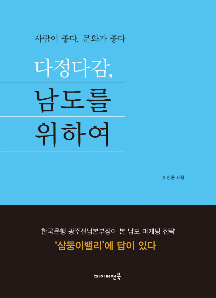 (서울=포커스뉴스) '다정다감, 남도를 위하여'는 저자 이명종이 남도를 탐구하며 수많은 시행착오 끝에 수립한 남도 마케팅 전략을 담은 책이다.