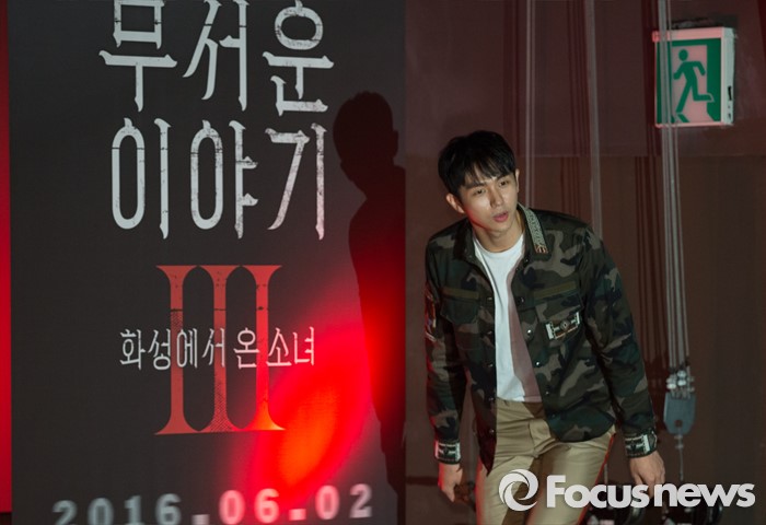 (서울=포커스뉴스) 11일 오전 서울 광진구 롯데시네마 건대입구점에서 열린 영화 '무서운이야기3' 제작보고회에 참석한 배우 임슬옹이 기자간담회를 위해 이동하고 있다.