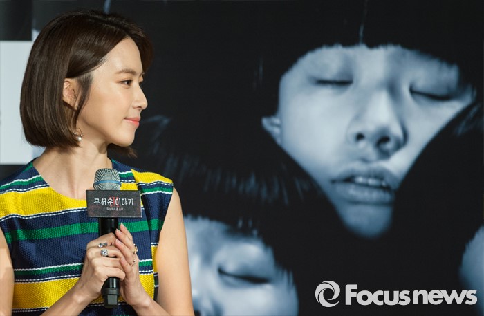 (서울=포커스뉴스) 11일 오전 서울 광진구 롯데시네마 건대입구점에서 열린 영화 '무서운이야기3' 제작보고회에 참석한 배우 홍은희가 주변을 살펴보고 있다.