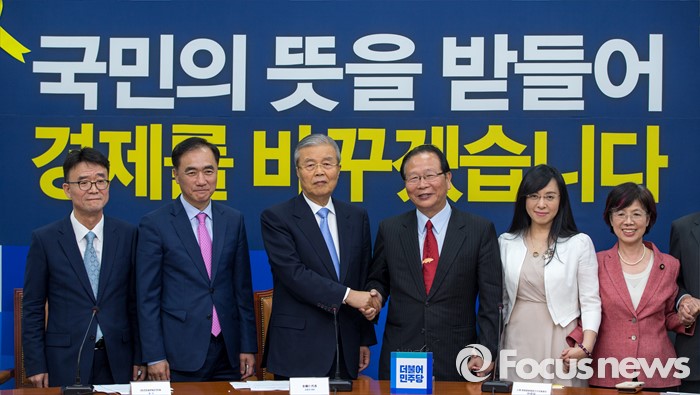 (서울=포커스뉴스) 김종인(왼쪽 세 번째) 더불어민주당 비상대책위 대표와 린더푸(오른쪽 세 번째) 대한-한 의원친선협회장을 비롯한 대만 의원들이 11일 오전 서울 여의도 국회에서 면담에 앞서 사진촬영을 하고 있다.
