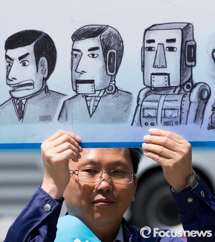 (서울=포커스뉴스) 11일 오전 서울 종로구 청계광장에서 감정노동전국네트워크가 감정노동자 권리보호 캠페인을 하고 있다.