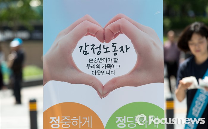 (서울=포커스뉴스) 11일 오전 서울 종로구 청계광장에서 감정노동전국네트워크가 감정노동자 권리보호 캠페인을 하고 있다.