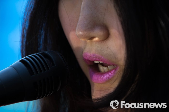 | △ 삭발 전 발언에 나선 황지나씨 |