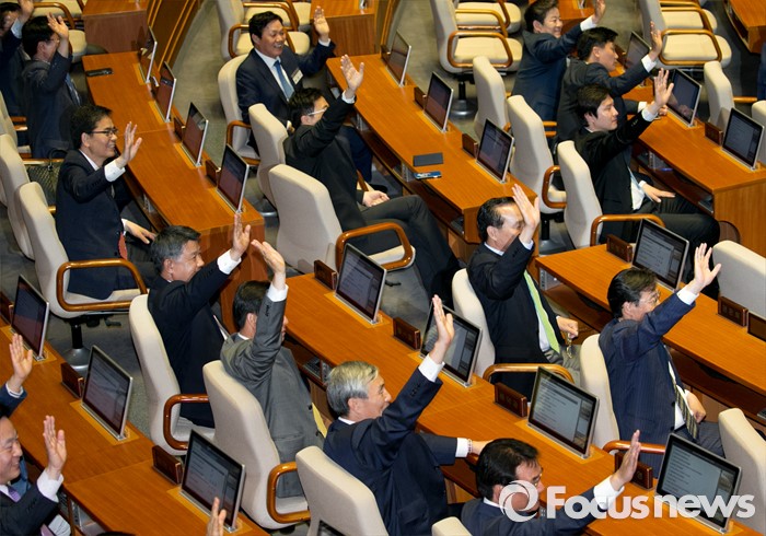 (서울=포커스뉴스) 11일 오후 서울 여의도 국회 본회의장을 방문한 20대 국회 초선 당선인들이 전자투표 시연 교육 등을 받은 뒤 취재진의 요청으로 손을 흔들고 있다.