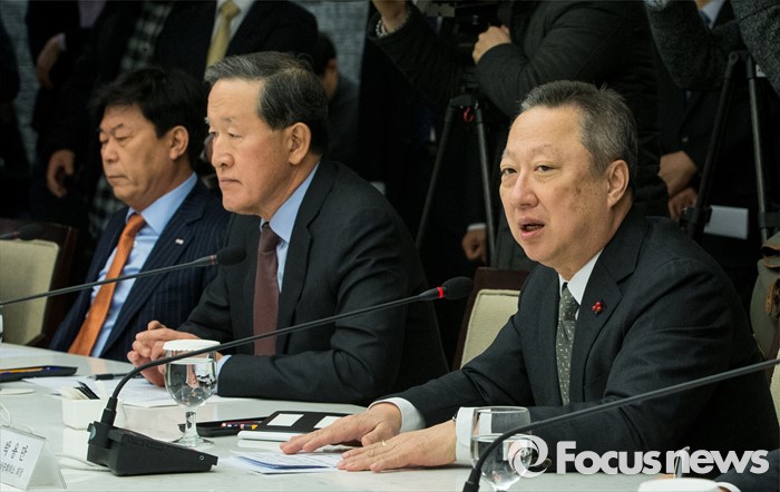 경제계는 동시에 보건·의료, ICT, 에너지신산업 등 고부가가치 신산업분야로의 시장진출 확대, 한류확산을 통한 문화·소비재 시장 개척, 중소·중견기업들의 글로벌 시장 진출역량 제고를 다짐했다.(서울=포커스뉴스) 지난 2일 오전 서울 중구 대한상공회의소에서 열린 '경제장관-경제단체장 간담회'에서 박용만 대한상의 회장이 인사말을 하고 있다. 양지웅 기자