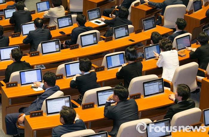 (서울=포커스뉴스) 11일 오후 서울 여의도 국회 본회의장을 방문한 20대 국회 초선 당선인들이 전자투표 시연 등 교육을 듣고 있다.