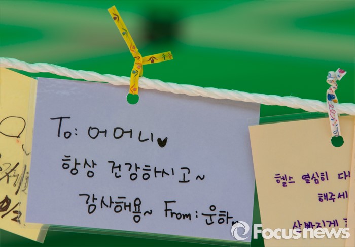 (대전=포커스뉴스) 대학축제가 한창인 11일 오전 대전 대덕구 한남대학교에서 학생들이 소원나무에 적어 놓은 메모가 보이고 있다.