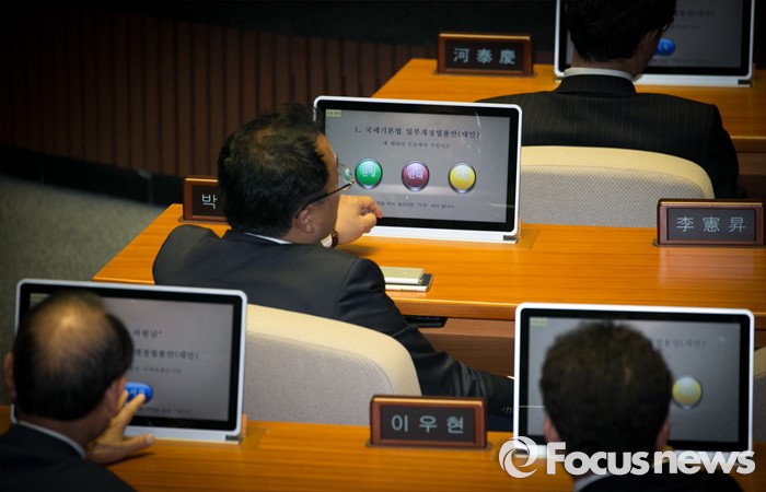 (서울=포커스뉴스) 11일 오후 서울 여의도 국회 본회의장을 방문한 20대 국회 초선 당선인들이 전자투표 시연 등 교육을 듣고 있다.
