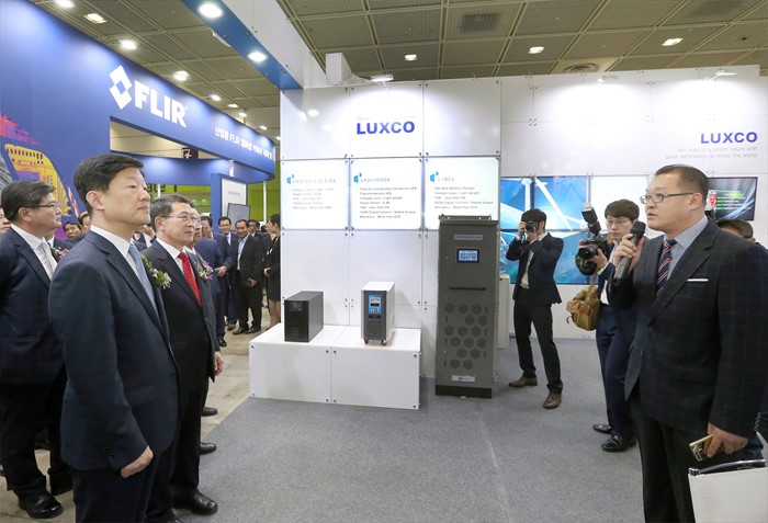(서울=포커스뉴스) 우태희 산업통상자원부 2차관이 11일 오전 서울 간암구 삼성동 코엑스 C홀에서 열린 '2016 국제 전기전력 전시회'에 참석해 개막식을 알리는 테이프커팅을 한 후 전기전력설비·기자재, 발전·원자력 플랜트 설비·기자재, 스마트그리드 및 관련 시스템, ESS, LED 조명 등 전시업체 전시관을 둘러보고 있다. <사진제공=산업통상자원부>