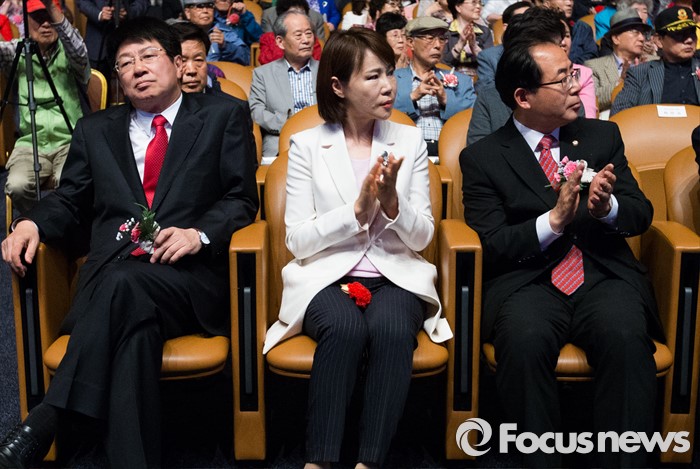 (서울=포커스뉴스) 11일 오후 서울 강남구 코엑스에서 열린 제44회 어버이날 기념 효드림 축제에 내빈들이 참석하고 있다. 왼쪽부터 이종구 새누리당 강남갑 당선인, 전현희 더불어문주당 강남을 당선인, 김성곤 의원.