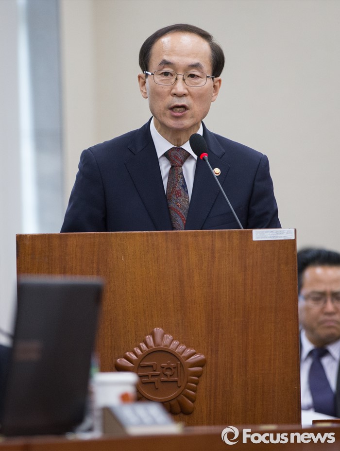 (서울=포커스뉴스) 윤성규 환경부 장관이 11일 오후 서울 여의도 국회에서 가습기 살균제 관련 현안보고 등을 위해 열린 환경노동위원회 전체회의에 참석해 현안보고를 하고 있다.