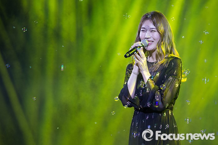 (서울=포커스뉴스) 11일 오후 서울 광진구 세종대학교에서 열린 '2016 세종대학교 축제'에서 가수 천단비가 환한 미소를 짓고 있다.