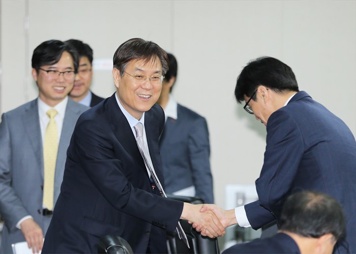 한편 산업포장은 한도준 삼익키리우 대표이사, 허재명 대원산업 대표이사, 이명학 쌍용자동차 상무, 고광기 명하테크 대표이사에게 각각 돌아갔다.(서울=포커스뉴스) 이관섭 산업통상자원부 1차관이 지난 3일 오후 서울 무역보험공사 대회의실에서 열린 제2차 수출지원기관협의회에 참석해 참석자들과 악수를 하고 있다. <사진제공=산업통상자원부> 포커스포토