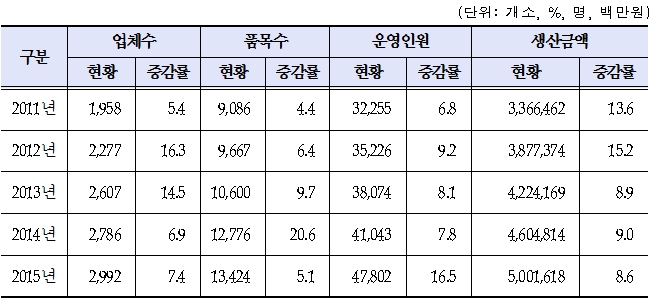 이는 인구의 고령화에 따라 건강과 미용에 대한 관심이 증가하고 있으며, 중국, 사우디아라비아 등 수출이 증가했기 때문이다.
