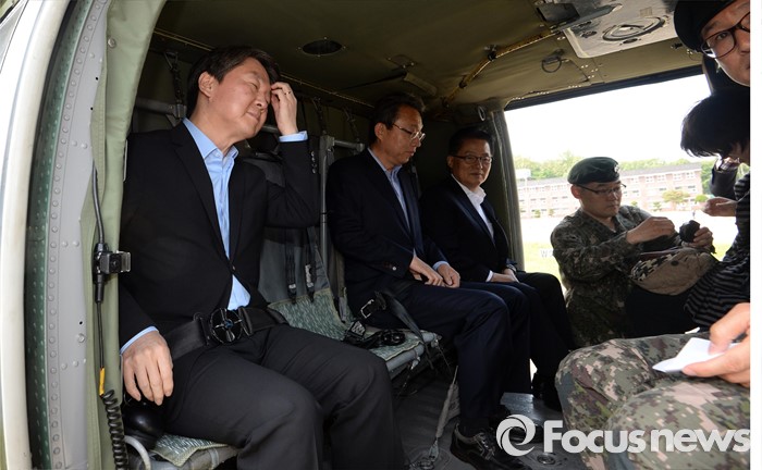 | △ 헬기 오른 안철수-박지원-김성식 |