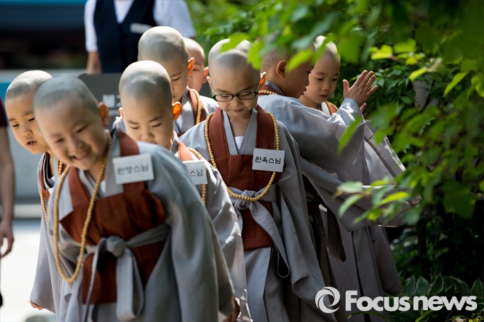 (서울=포커스뉴스) 석가탄신일을 이틀 앞둔 12일 오전 서울 종로구 조계사에서 동자승들이 경내를 둘러보고 있다.