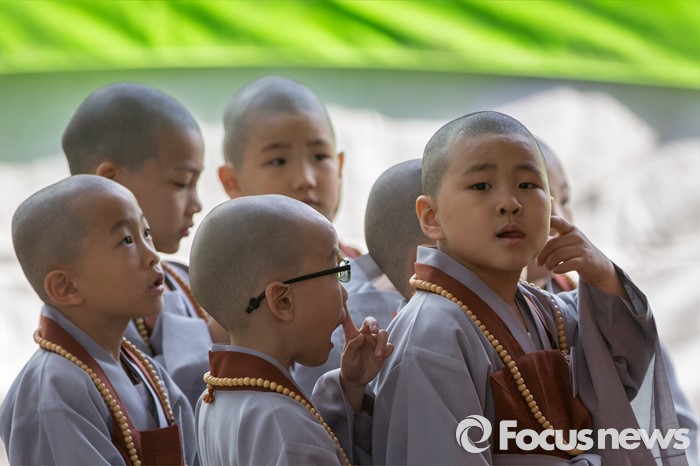 (서울=포커스뉴스) 석가탄신일을 이틀 앞둔 12일 오전 서울 종로구 조계사에서 동자승들이 경내를 둘러보고 있다.