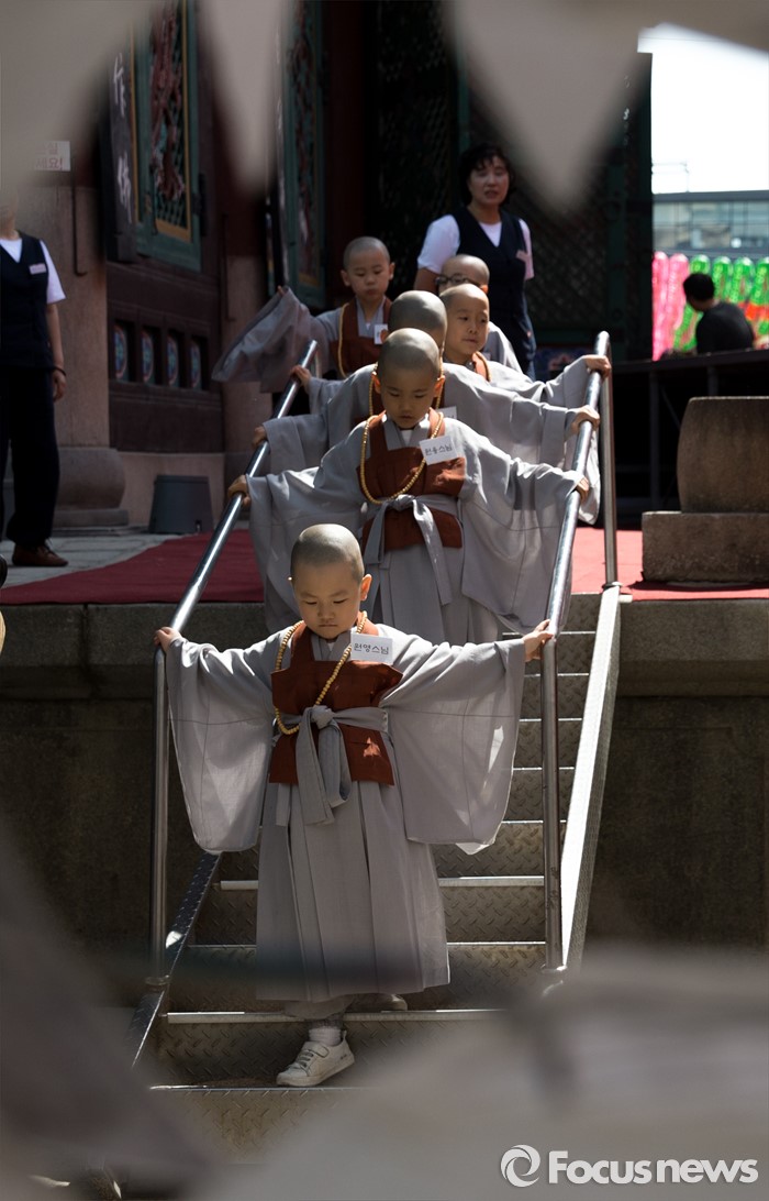 (서울=포커스뉴스) 석가탄신일을 이틀 앞둔 12일 오전 서울 종로구 조계사에서 동자승들이 경내를 둘러보고 있다.