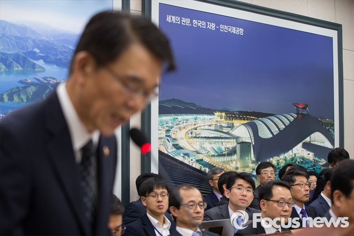 (서울=포커스뉴스) 강호인 국토교통부 장관이 12일 오전 서울 여의도 국회에서 지난 5일 인천공항에서 대한항공 여객기가 다른 비행기와 충돌할 뻔한 사고와 잇따른 열차 탈선 사고 등에 관련된 현안 보고를 하고 있다.