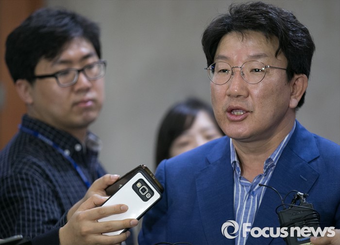 (서울=포커스뉴스) 권성동 국회 환경노동위원회 여당 간사가 12일 오후 서울 여의도 국회 정론관에서 가습기 살균제 사건 관련 기자회견을 마친 뒤 취재진 질문에 답하고 있다.