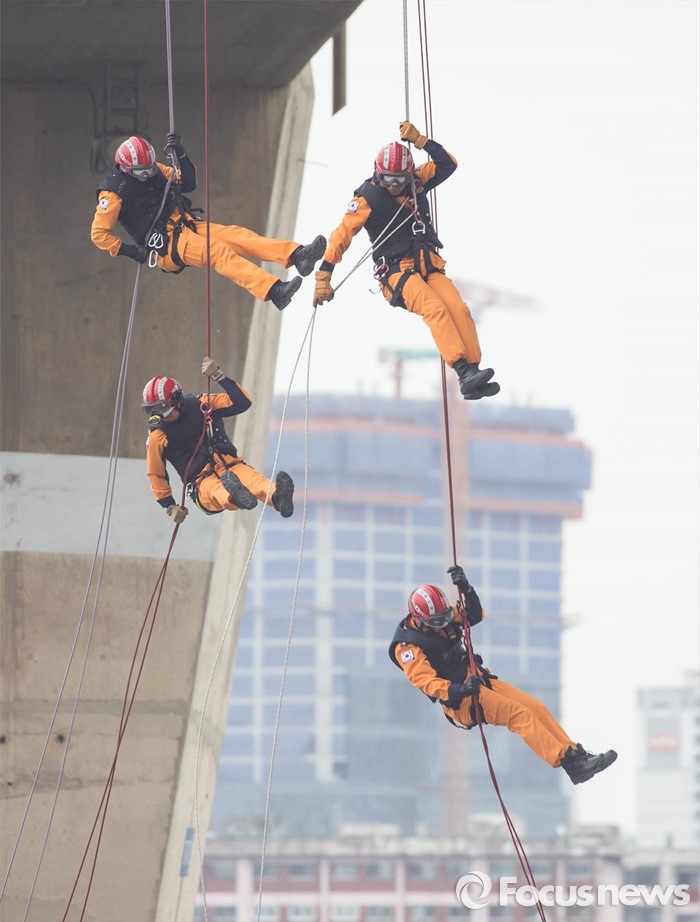 국방부 재난관리지원과는 "이번 훈련기간을 재난대비 집중주간으로 운용해 태풍·집중호우 등 자연재난에 대한 군내 대비태세와 대민지원 체계를 점검할 것이다"며 "또 화재, 붕괴, 감염병 등 각종 사회재난에 대한 대응태세를 구축해 재난 발생시 군이 즉각적인 지원을 함으로써 신뢰받는 군이 될 수 있도록 할 것이다"고 밝혔다.(서울=포커스뉴스) 지난 달 27일 오전 서울 영등포구 여의도 한강공원 원효대교 일대에서 열린 '수도 서울 민․관․군 합동 대규모 복합재난 가상훈련'에 참가한 구조대원들이 레펠하강을 하고 있다. 2016.04.27 이승배 기자