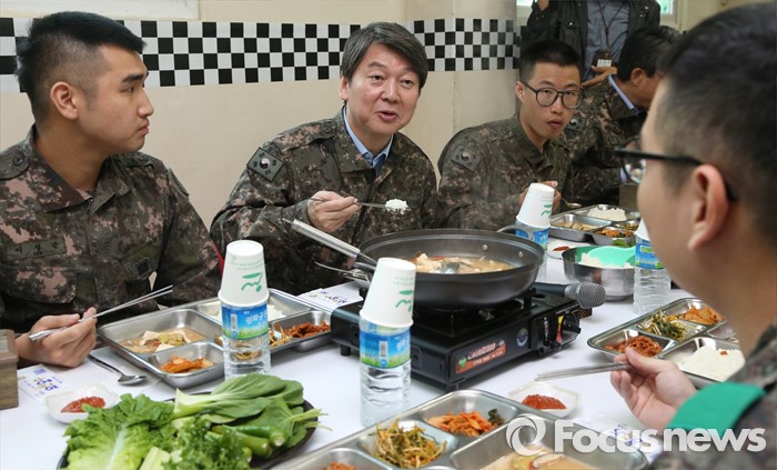 | △ 장병들과 함께 식사하는 안철수 |