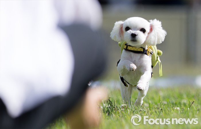 (서울=포커스뉴스) 12일 오후 서울 광진구 건국대학교 잔디광장에서 수의과대학 주최로 열린 '반려견과 함께하는 축제, 반함'에서 반려견들이 주인을 향해 달리고 있다.