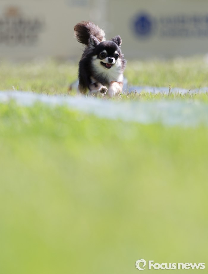 (서울=포커스뉴스) 12일 오후 서울 광진구 건국대학교 잔디광장에서 수의과대학 주최로 열린 '반려견과 함께하는 축제, 반함'에서 반려견들이 주인을 향해 달리고 있다.