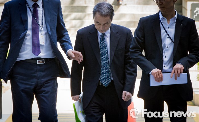 (서울=포커스뉴스) 가습기 살균제 피해사건의 최대 책임자로 지목된 신현우 전 옥시레킷벤키저 대표가 영장실질심사를 받기 위해 13일 오전 서울중앙지법으로 들어서고 있다.