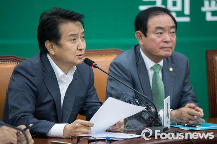 (서울=포커스뉴스) 김영환(왼쪽) 국민의당 신임 사무총장이 13일 오전 서울 여의도 국회에서 열린 최고위원회의에 참석해 발언하고 있다.