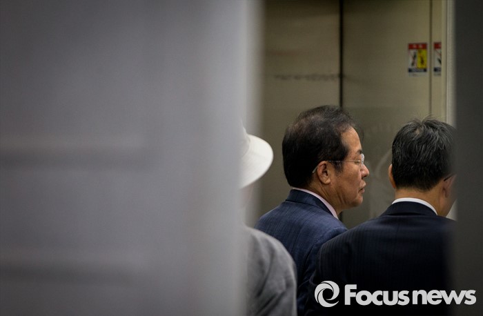(서울=포커스뉴스) '성완종 리스트'로 논란이 된 홍준표 경남도지사가 정치자금법 위반 혐의에 대한 속행공판에 출석하기 위해 13일 오전 서울중앙지법으로 들어서고 있다.