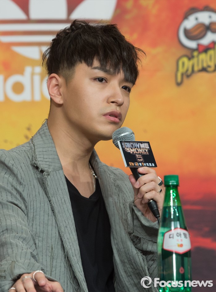 (서울=포커스뉴스) 13일 오전 서울 영등포구 타임스퀘어 아모리스홀에서 열린 Mnet '쇼미더머니5' 제작발표회에 참석한 래퍼 사이먼도미닉이 취재진의 질문에 답하고 있다.