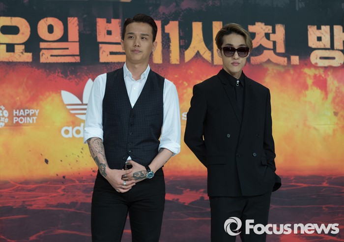 (서울=포커스뉴스) 13일 오전 서울 영등포구 타임스퀘어 아모리스홀에서 열린 Mnet '쇼미더머니5' 제작발표회에 참석한 작곡가 쿠시와(왼쪽) 가수 자이언티가 포토타임을 갖고 있다.