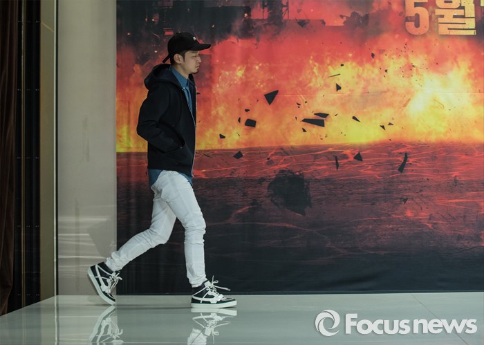 (서울=포커스뉴스) 13일 오전 서울 영등포구 타임스퀘어 아모리스홀에서 열린 Mnet '쇼미더머니5' 제작발표회에 참석한 래퍼 더콰이엇이 포토타임을 위해 이동하고 있다.