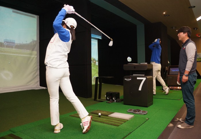지난달 처음 시행된 '골프교실'은 골프 경험을 쌓은 임직원들이 직접 참여, 스크린골프 시스템과 GDR(골프존 드라이빙 레인지)을 활용해 골프선수를 꿈꾸는 지적장애인 골퍼들에게 골프를 가르쳐주는 프로그램이다.