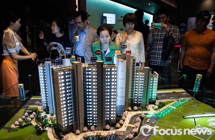 (서울=포커스뉴스) 이달 6만 8천여 가구라는 물량이 쏟아져 5월 분양전쟁이 예상되는 가운데 서울 용산구 효창동 KCC 스위첸 견본주택이 방문한 시민들로 붐비고 있다.