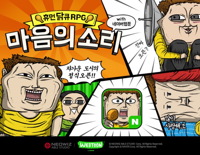 네오위즈에이블스튜디오(대표 김인권)의 모바일게임 '마음의 소리 with 네이버 웹툰'은 지난달 25일 출시 이후 구글 매출 순위 30위권에 안착하면서 인기를 증명하고 있다.