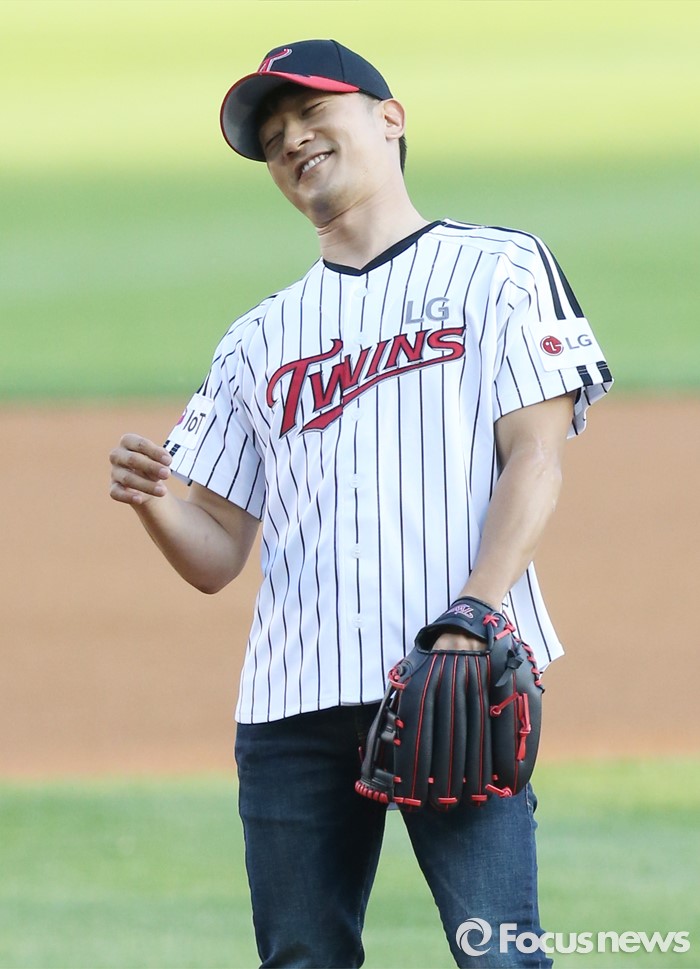 (서울=포커스뉴스) 13일 서울 잠실구장에서 열린 2016 프로야구 SK-LG 경기에서 클래지콰이의 알렉스가 시구한 후 멋적어하고 있다.
