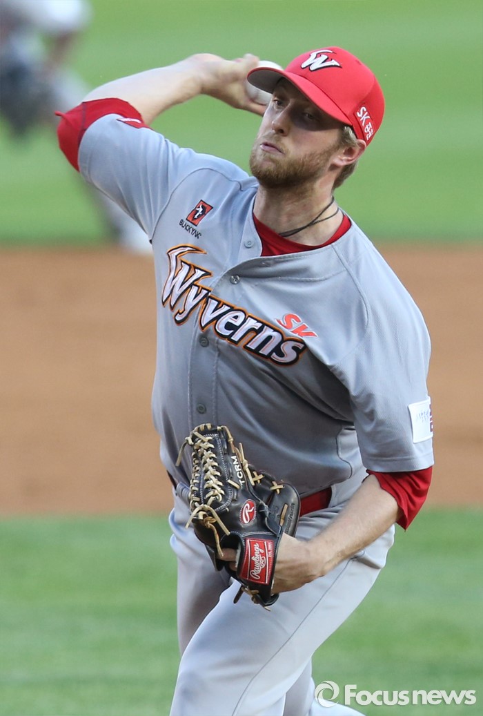 (서울=포커스뉴스) 13일 서울 잠실구장에서 열린 2016 프로야구 SK-LG 경기에서 1회말 SK 선발투수 켈리가 투구하고 있다.
