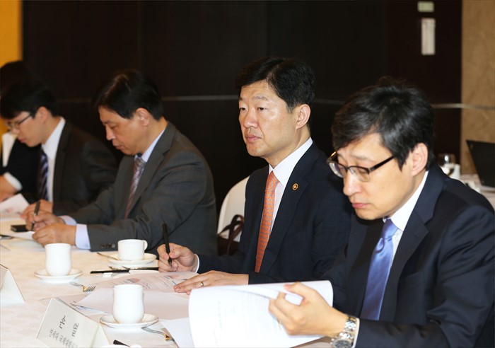 (서울=포커스뉴스) 우태희 산업통상자원부 2차관이 13일 서울 중구 소공동 롯데호텔 칼톤스위트룸에서 열린 제4차 통상정책포럼에 참석해 포럼을 주재하고 있다. <사진제공=산업통상자원부>