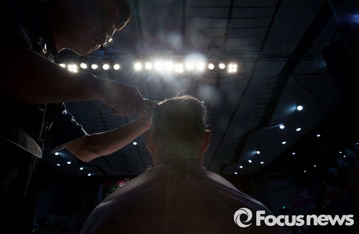 (서울=포커스뉴스) 14일 오후 서울 강서구 KBS스포츠월드에서 성과연봉제 저지를 위한 금융공기업지부 합동 대의원대회에 참석한 김문호 금융노조 위원장과 금융공기업 지부 위원장들이 총파업을 결의하며 삭발식을 하고 있다.